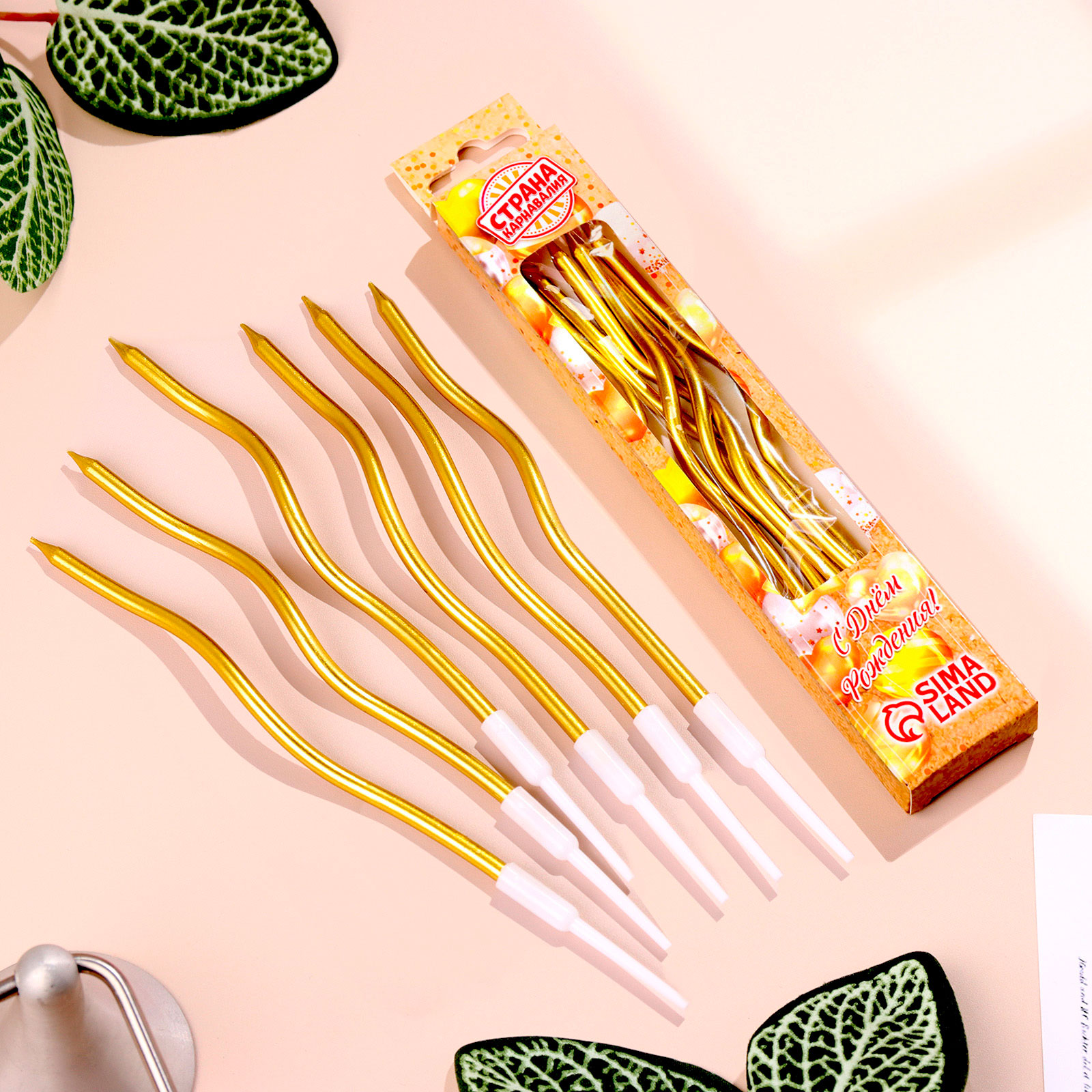 Свечи "Серпантин" для торта, золото, 6 шт/уп